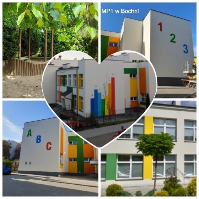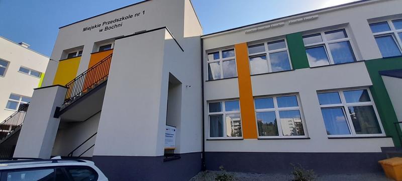 Miejskie Przedszkole nr 1 w Bochni zostało założone w roku 2007. Przedszkole dysponuje 5 oddziałami dla 125 dzieci w wieku 3- 6 lat. W przypadku wolnych miejsc może być przyjęte dziecko, które ukończyło 2,5 roku. Budynek przedszkola jest położony w centrum osiedla Niepodległości i jest budynkiem wolnostojącym. Obok znajduje się kompleks budynków SP7. Ostatnio Przedszkole zostało wyremontowane w roku 2025 m. in. wymieniono instalację elektryczną, zmodernizowano instalację c.o.. W pomieszczeniach przedszkolnych założono instalację p. poż., wszystkie ściany zostały pomalowane, a wcześniej położono gładź. W roku 2021 i 2022 przeprowadzone zostały prace związane z termomodernizacją budynku. Przedszkole posiada własny, piękny, duży, ogrodzony plac zabaw, zlokalizowany bezpośrednio za budynkiem przedszkola. Urządzenia zabawowe dostosowane są do wieku dzieci.