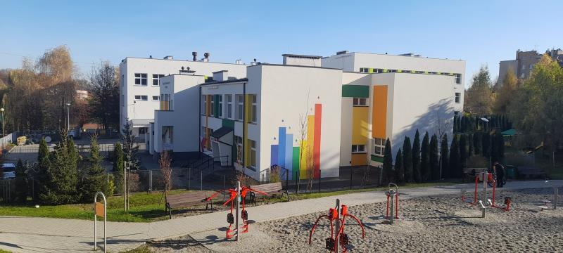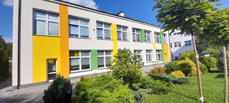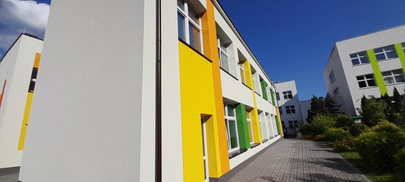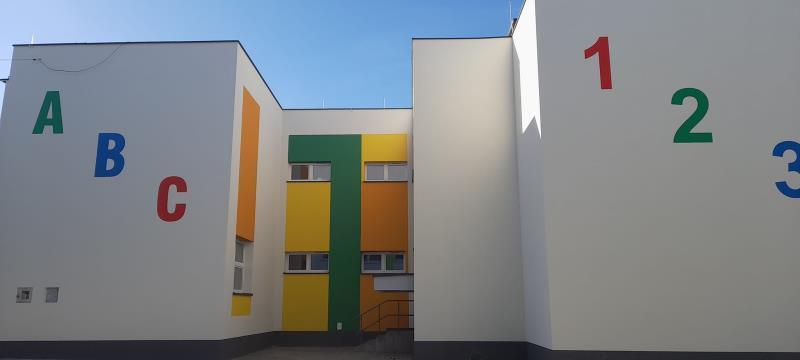 * kolorowy, przystępny dla dzieci budynek z kolorową, piękną elewacją,