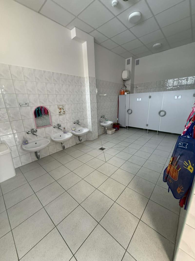 * jasne, przestronne, nasłonecznione sale z bezpośrednim dostępem do łazienek (wyposażenie jest dostosowane do wieku dzieci),