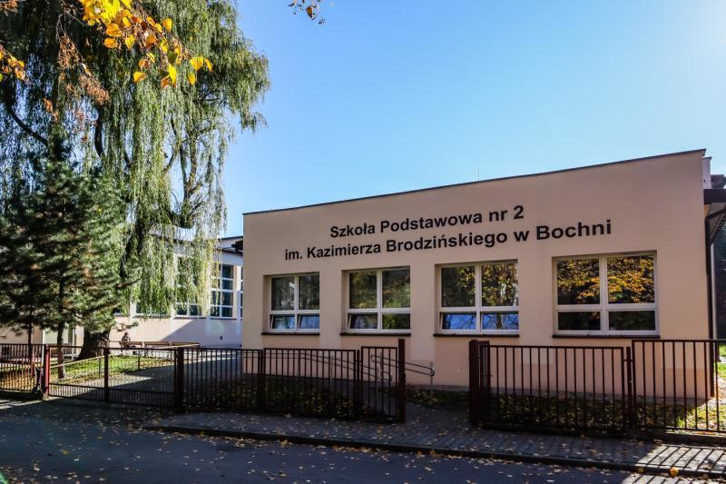 Szkoła Podstawowa nr 2 im. Kazimierza Brodzińskiego w Bochni usytuowana jest w sercu bocheńskich plant: strefy aktywności i zieleni. Wygodny i funkcjonalny budynek posiada 24 sale lekcyjne dla uczniów, 3 gabinety do pracy grupowej, salę gimnastyczną, świetlicę, jadalnię oraz jeden ogólnodostępny oddział przedszkolny. Szkoła położona jest w otoczeniu zieleni, gdzie znajdują się: przestronny plac zabaw wraz z torem lekkoatletycznym, dwoma boiskami sportowymi oraz ogrodem sensorycznym.