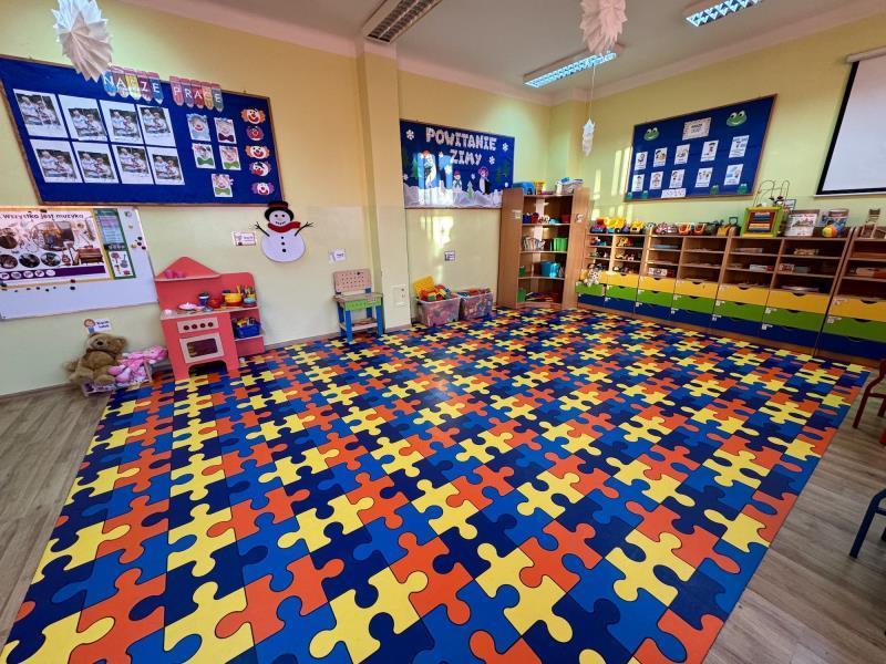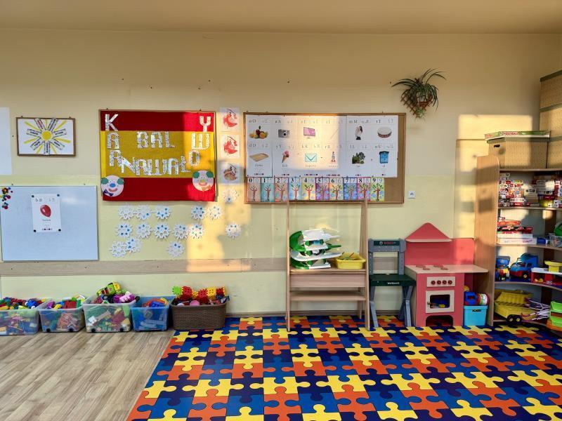 w niezbędne pomoce i zabawki, a także sprzęt multimedialny, - salą zabaw z Magicznym Dywanem,