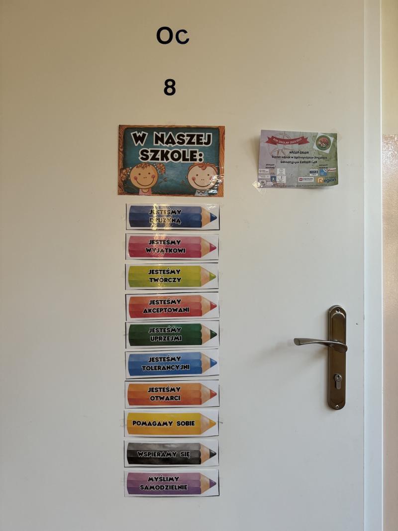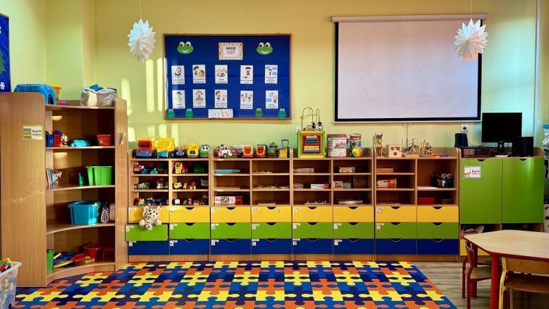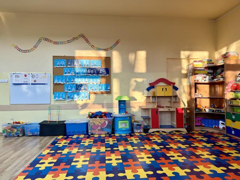 - oddzielonymi od części przeznaczonej dla starszych uczniów salami przedszkolnymi wyposażonymi